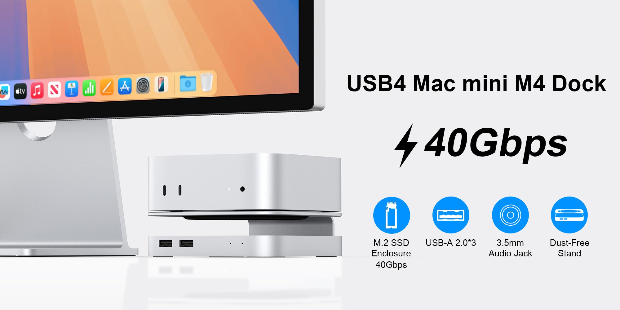 USB4 40Gps Mac Mini Dock and Stand for M4 and M4 Pro