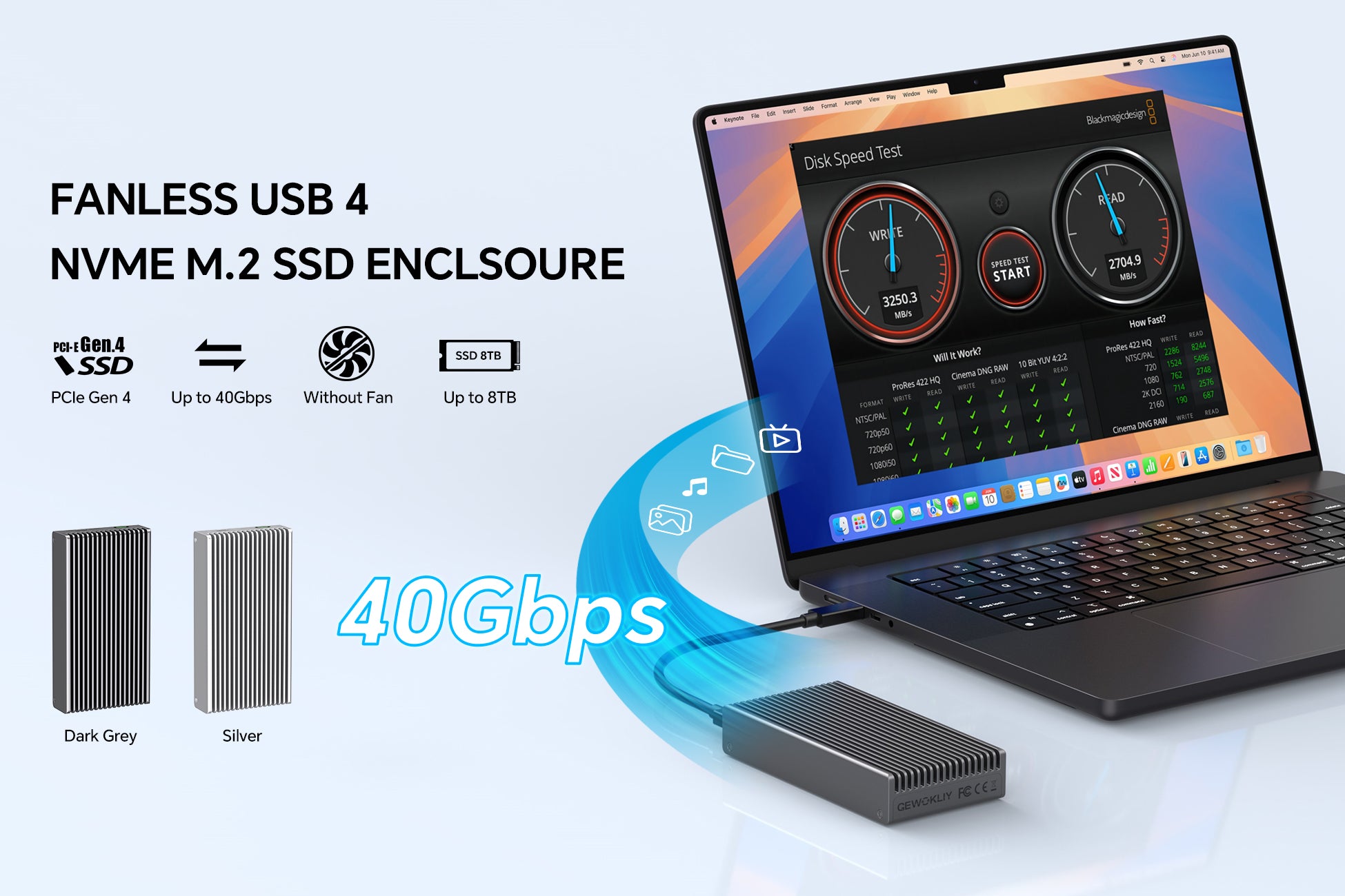 Gewokliy Fanless USB4 40Gbps M.2 NVMe Enclosure Compatible with Thunderbolt4/5(Gray)
